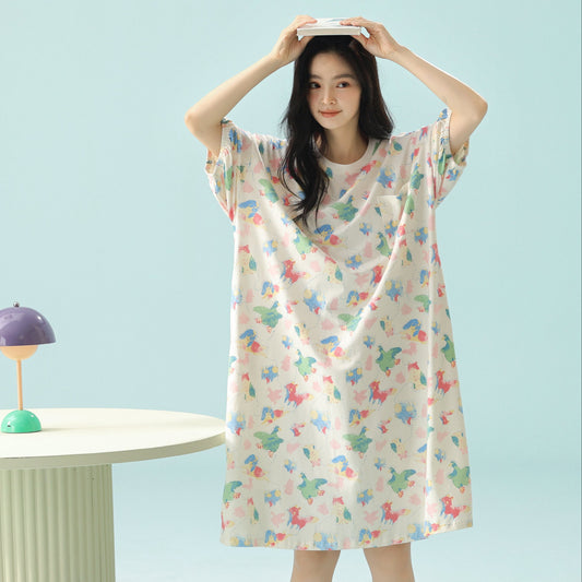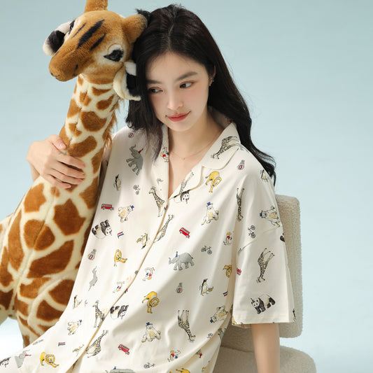 Dreamy Zoo · Women's Cotton Pajama Set - Short Sleeve & Shorts / Nightdress