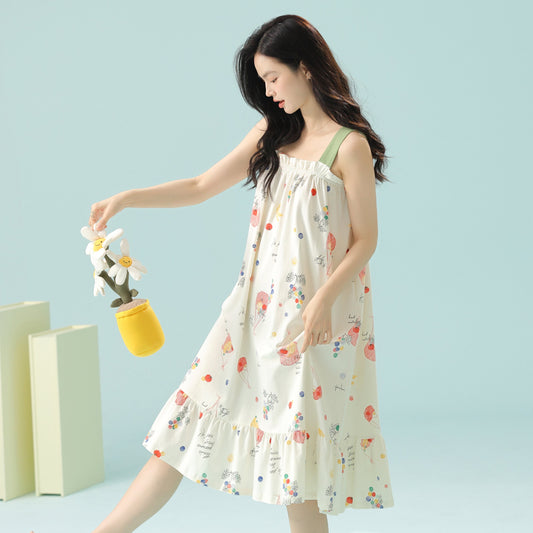 Flora & Fruity · Women's Cotton Pajama Set - Short-Sleeve Nightdress / Camisole Nightdress