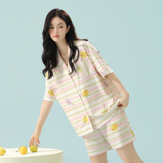 Lemon Pop · Women's Cotton Pajama Set - Short Sleeve & Shorts / Nightdress
