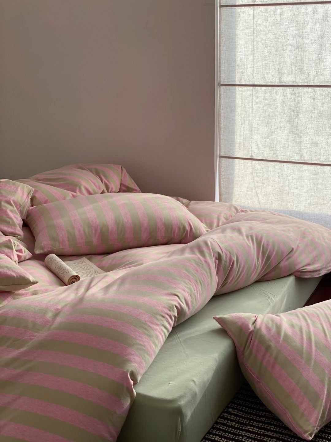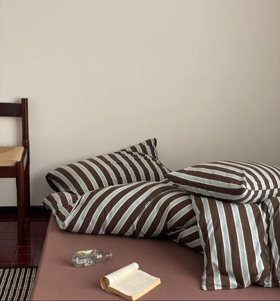 100% Knit Cotton Stripes Bedding Set