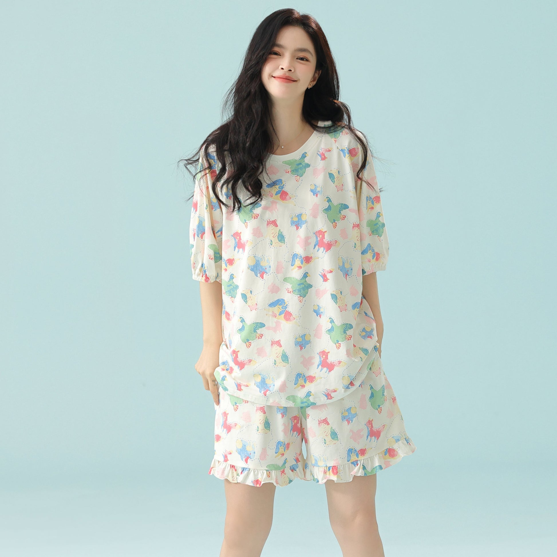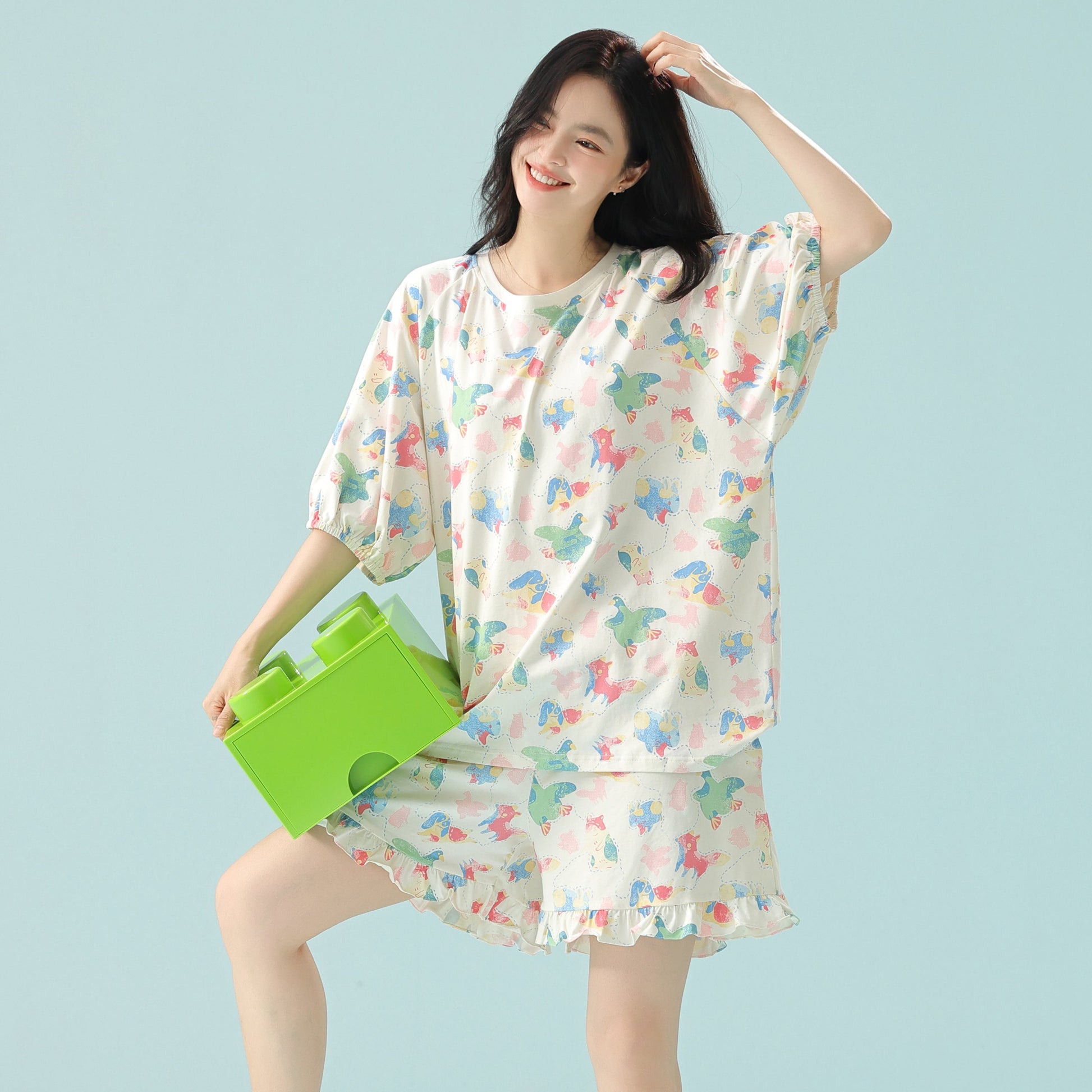 Cloud Critters · Women's Cotton Pajama Set - Short Sleeve & Shorts / Nightdress