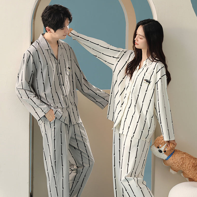 Puppy Lines · Couple Cotton Long Sleeve Pajama Set