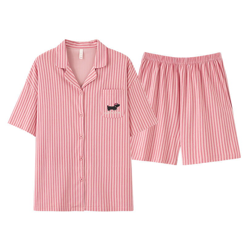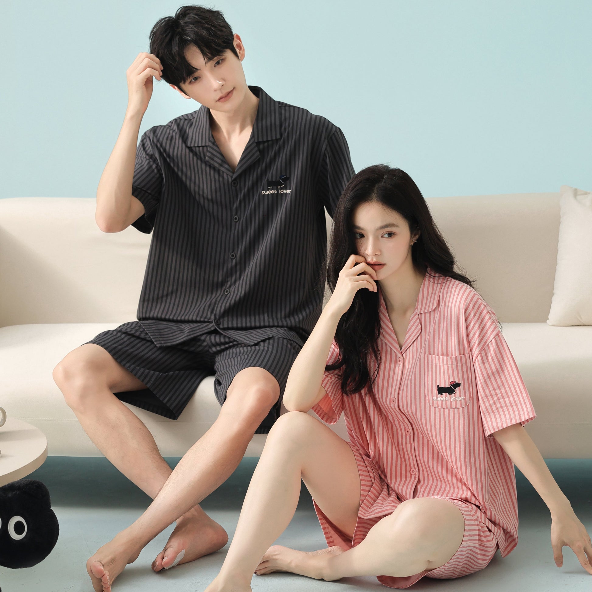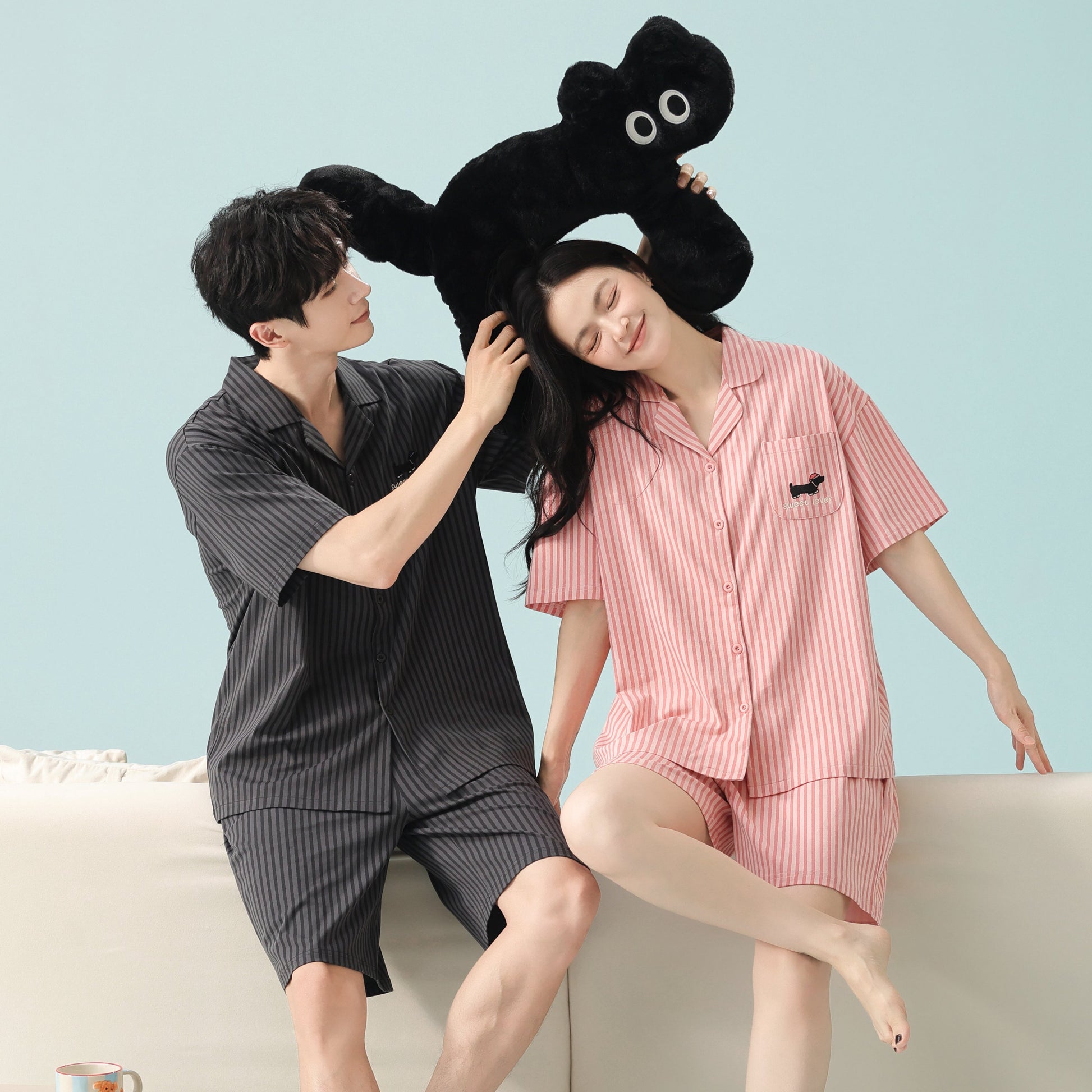 Puppy Stripes · Couple Cotton Short Sleeve Pajama Set
