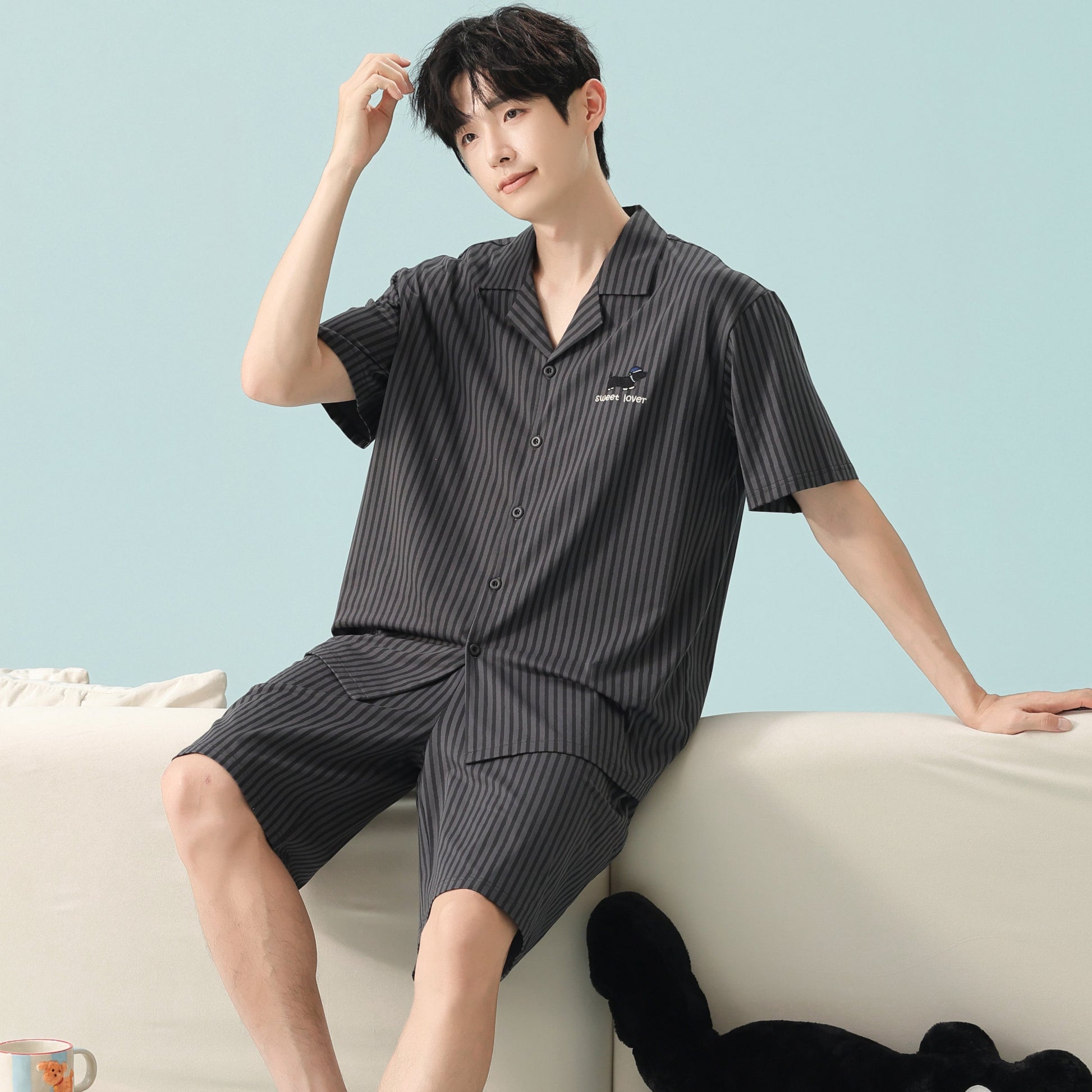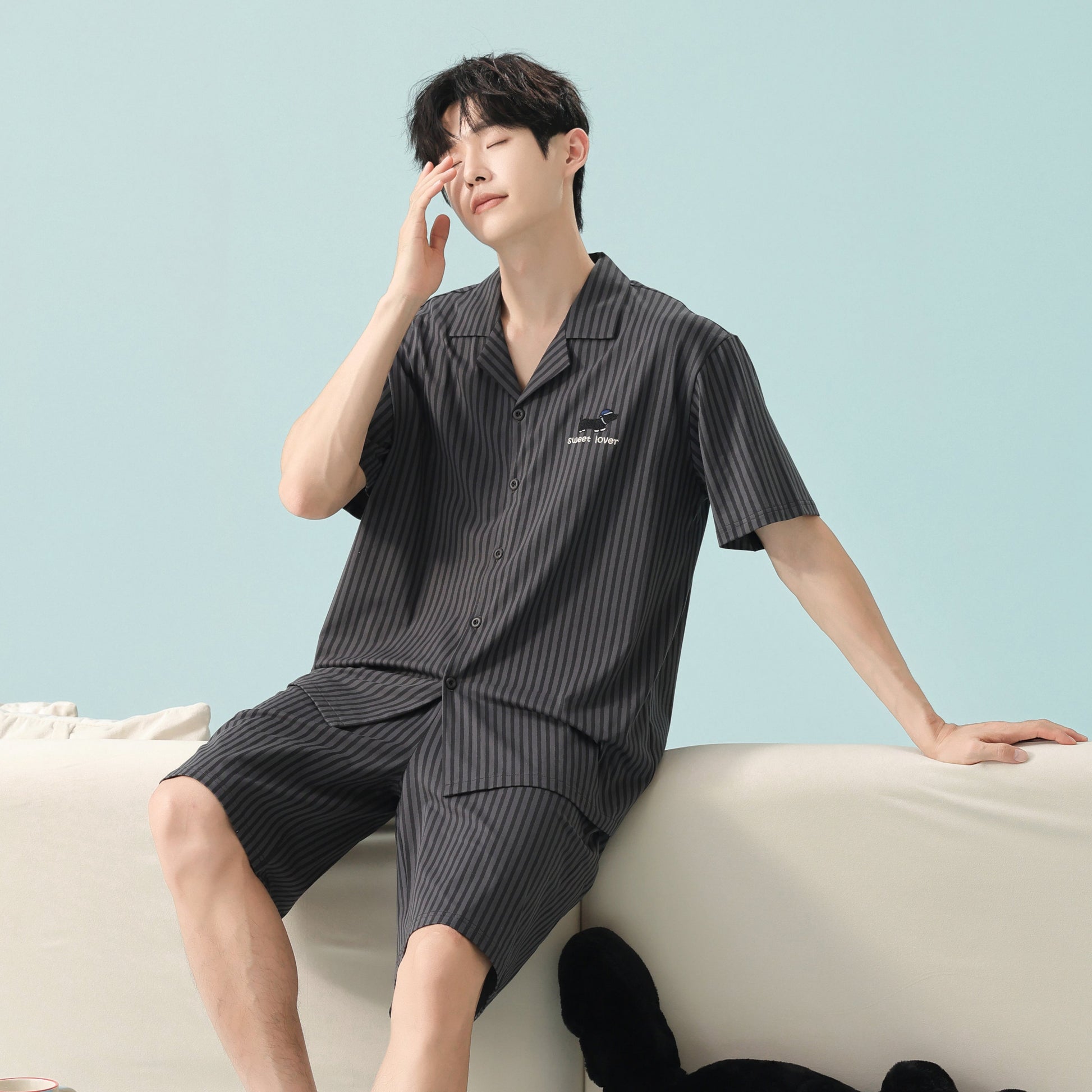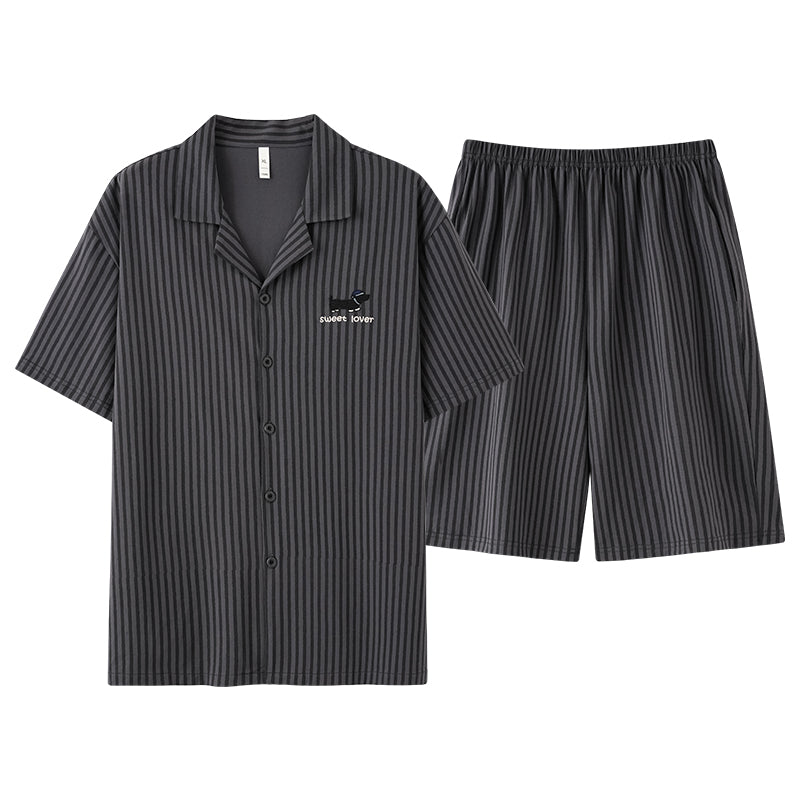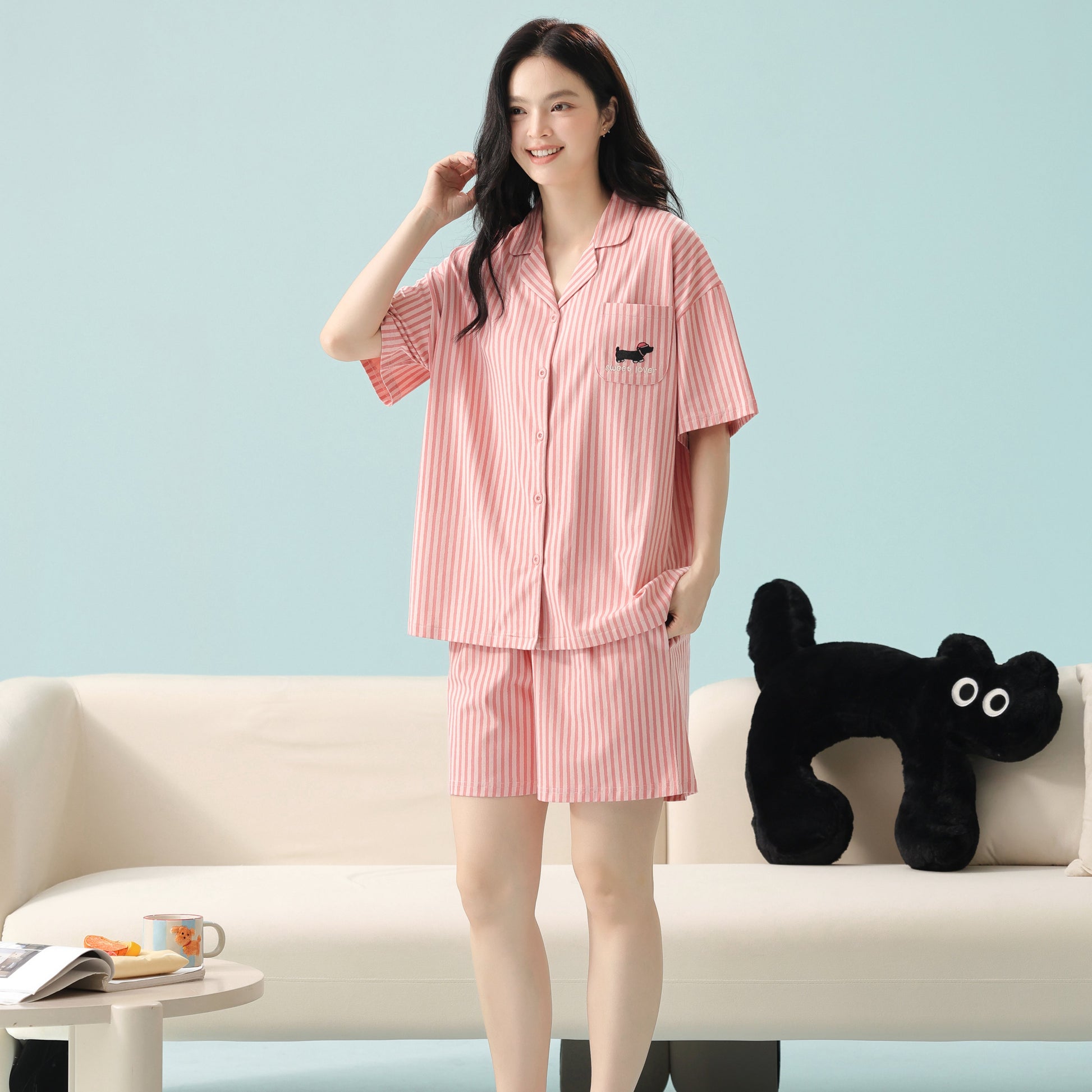 Puppy Stripes · Couple Cotton Short Sleeve Pajama Set